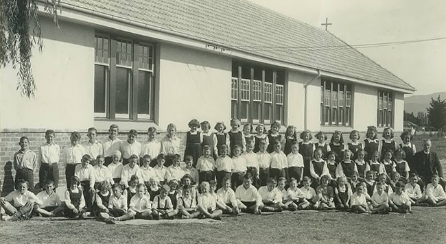 Built by L. J. Breen prior to C. F. and N.F. Breen returning home from the Second World War. Photo c.1948; John Breen (son of Charlie Breen) is one of the wee fellows sitting at the bottom left.