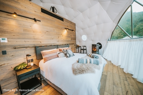 Featuring underfloor heated large tiled showers, bay windows with world-class views of the surrounding forest and mountains, gas fires and finished with their own entrance and deck, these domes are not just your ‘run-of-the-mill’ glamping accommodation.