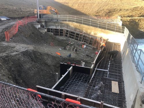 A recent review of the Hawea dam identified that the seismic resilience of the dam’s downstream sluice required upgrading to modern standards. This included strengthening the existing outlet and stilling basin retaining walls.